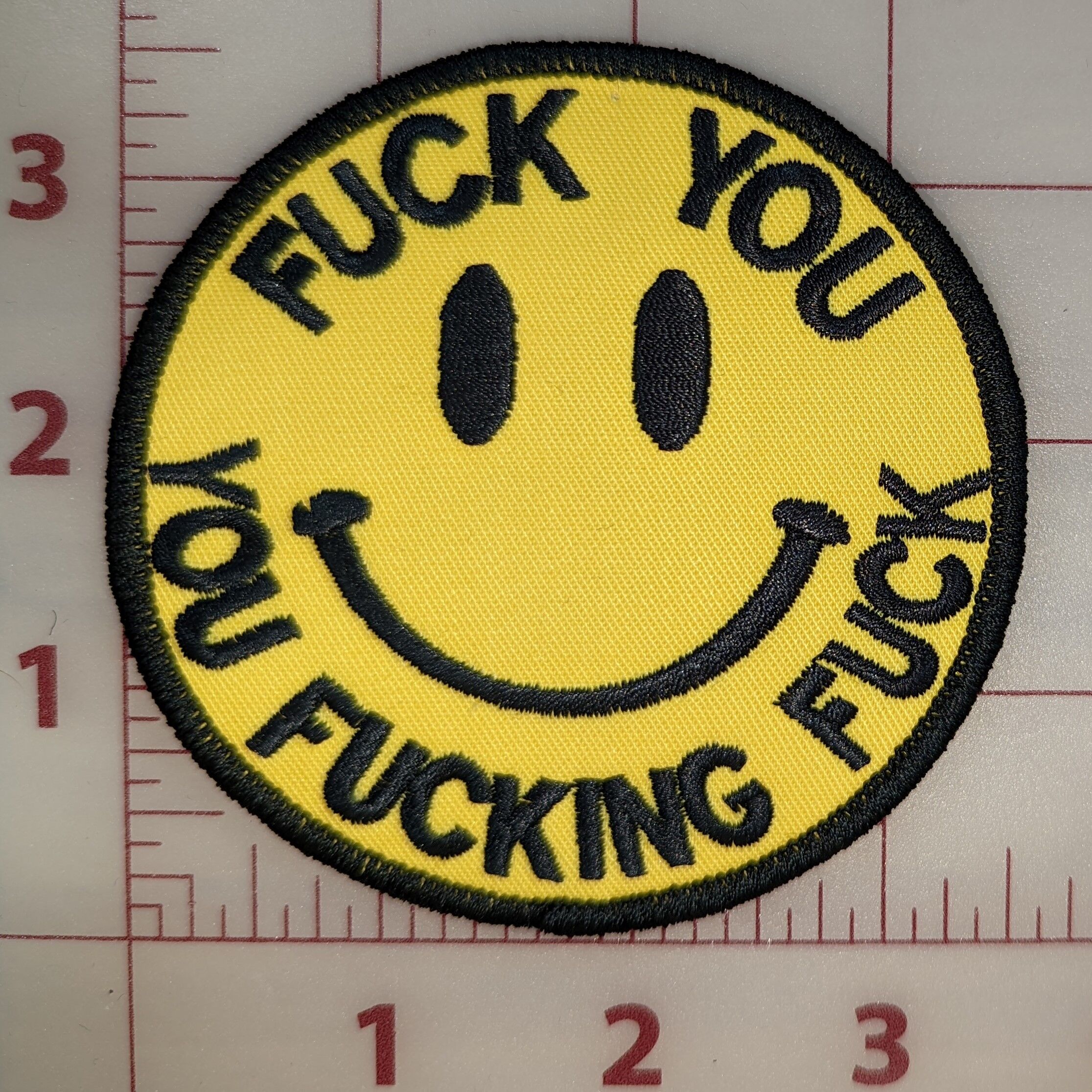 3.5″ x 3.5″ FUUFF smiley face with Velcro back.