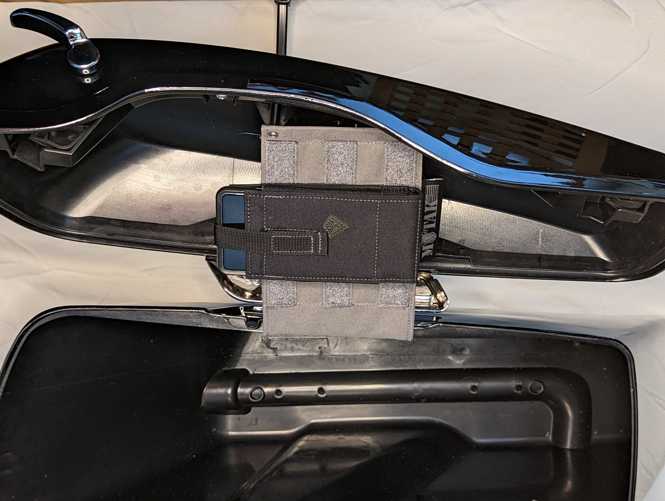 This original Tactitether fits 2014 to 2025 Harley-Davidson® saddle bags, it replaces your factory saddlebag tether in size, fit, and function. What it ads is a hidden inner pouch for cash, insurance, registration, and other small items. It also give you the ability to add any MOLLE compatible pouches to the face of the tether or just use the loops to hang your shades. The face of the tether is also covered in 3M loop Velcro so you can add your favorite patches along your journey.